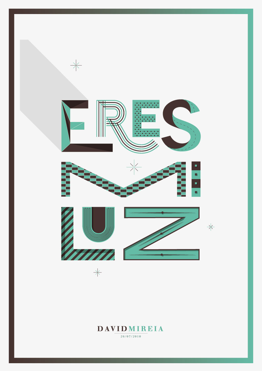 M. V. : In the best case , do not make sketches your concept on a computer. I usually do the same sketch by hand at least four times before scanning it. Twenty minutes passed in correcting defects in the design can avoid lots of computer time . Also, follow the great artists of lettering (Tyrsa, Alex Trochut , etc. . ) and get inspired by their know-how’ and experience.