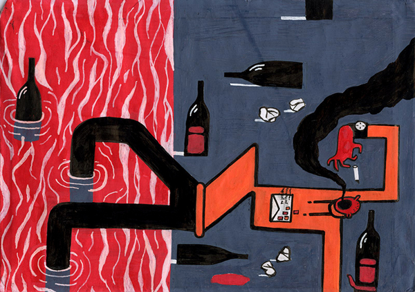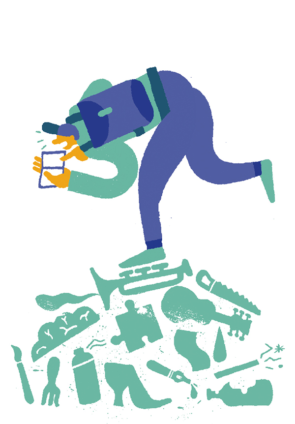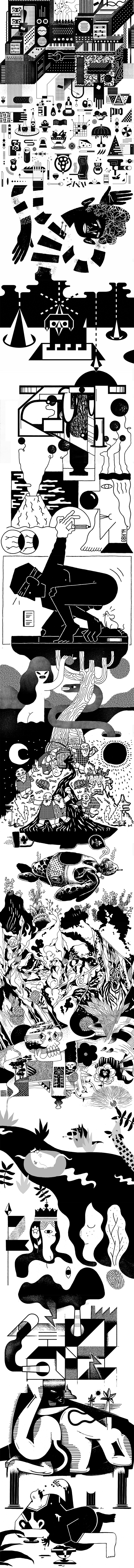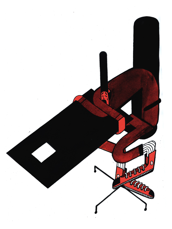 Really important, the hot shower! After that I like drinking a coffee and start checking my mailbox. Than I start sketching with a little marker to create an idea and to warm up. The rest of the day depends on the jobs. I finish my working day most of the time with a beer and some chips or nuts.