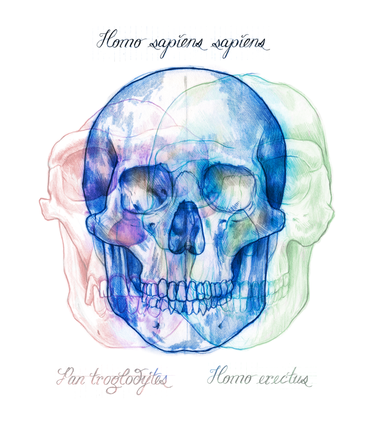 Graphite, eraser, any paper, Wacom tablet, laptop, scanner, Adobe Photoshop and Illustrator.