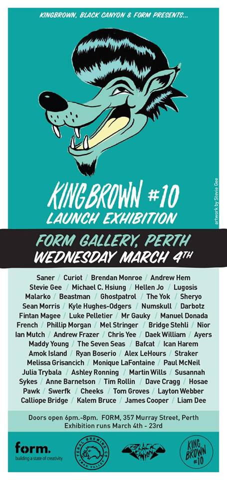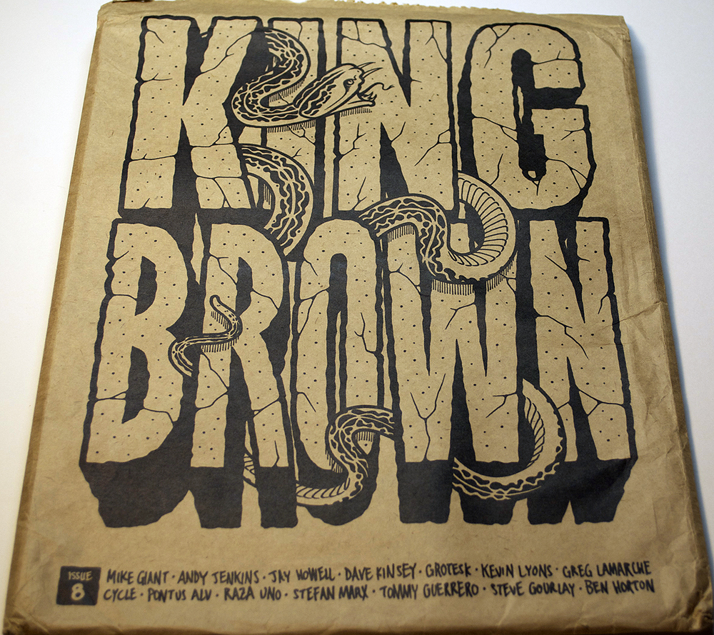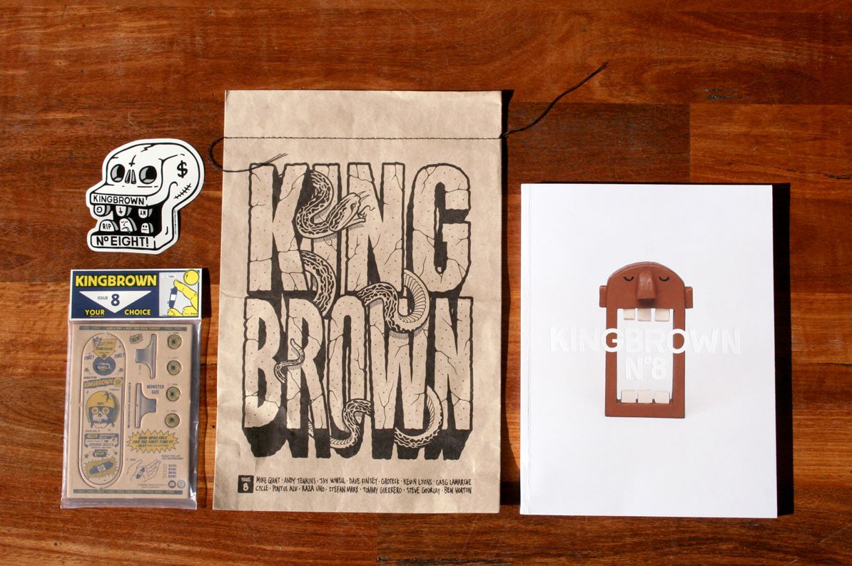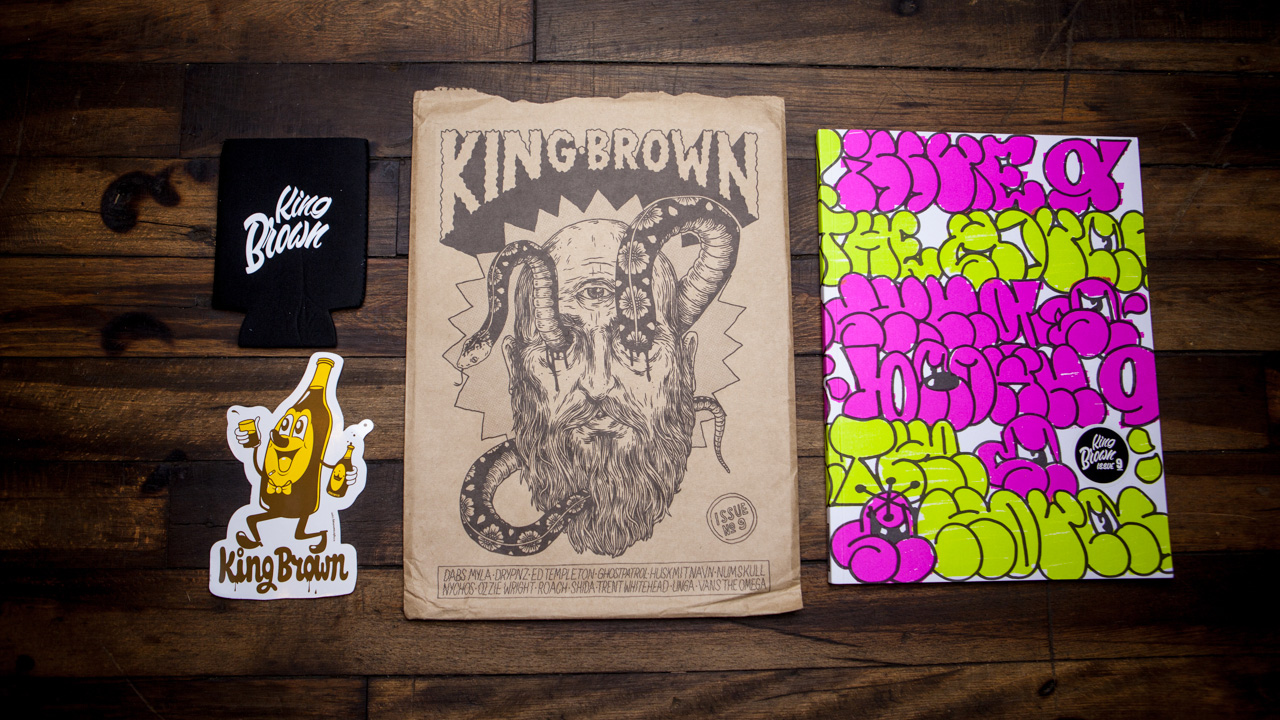 Kingbrown is West Australian slang for a longneck beer – a 40 oz. Wrapped in a brown bag, just like a good 40 should. Our magazine follows this style. It is freshly wrapped inside a brown bag and holds large volume. There is little to no advertising. The pages are printed with tasty artwork from quality artists. Recently we’ve enjoyed co-curating issues with our friends and peers. This opens up a wider range of artist networks and delivers more personal interview styles. Each edition has bit of a theme or style with the artists involved. Our content is mainly street related art, illustration, photography, music and skateboarding.