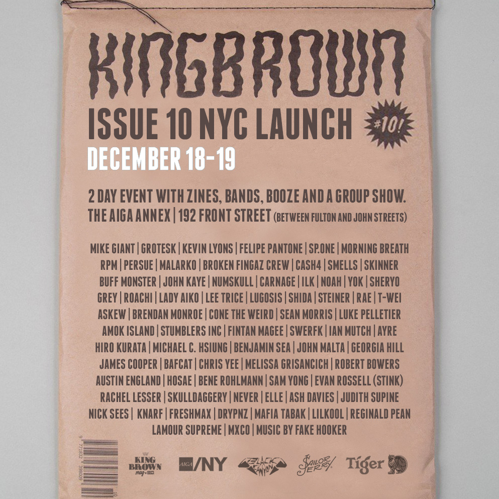 Kingbrown has a solid base of passionate followers. We’re limited edition and not a large circulation. I think readers seek us out because they know past issues sell out. We always have a rad time at our launch exhibition parties where we get to meet a lot of readers. The response is great. It’s rewarding to see the positive vibes at Kingbrown shows across different countries. If you’re in Canada hit us up direct for international postage rates via our web shop. We also offer domestic postage within the USA.