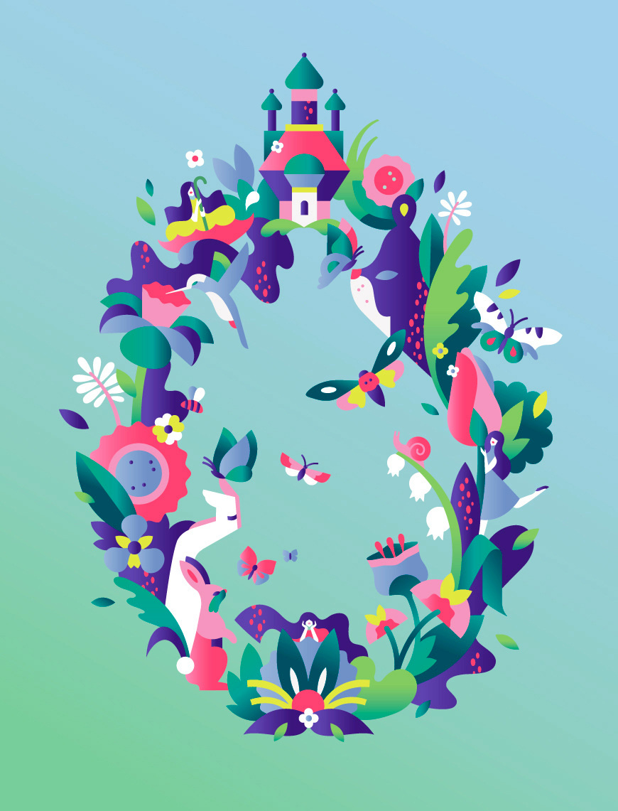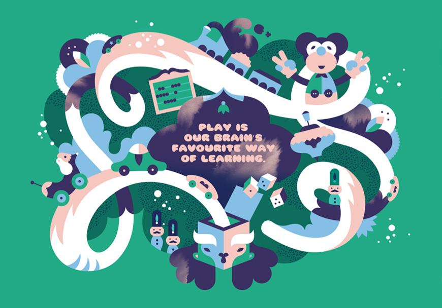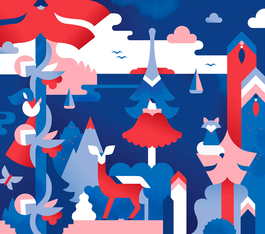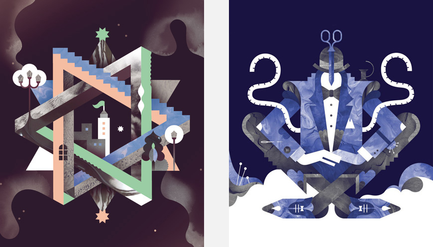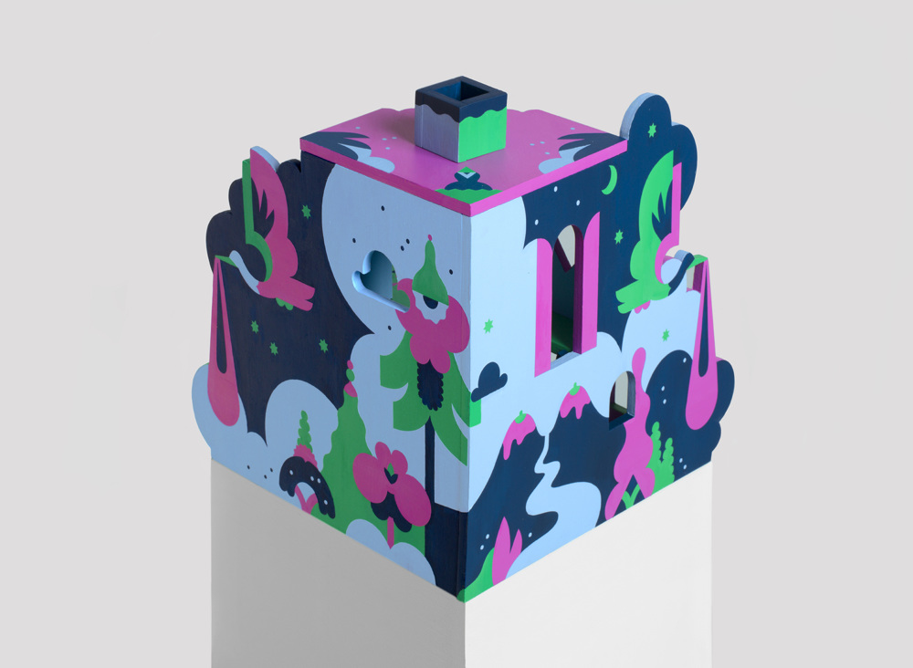 I work mainly with Adobe Illustrator, sketching happens with traditional pencil and paper, sometimes finalise my artwork with handmade textures in Photoshop. Currently I’m pretty bored with sitting in front of my computer, so I constantly try to come up with art projects that are more physical. I recently created a dollhouse collection, NOOKS (http://www.nooks.fi), which was hand built and painted in my studio. It was super fun to play with wooden structures and paints!