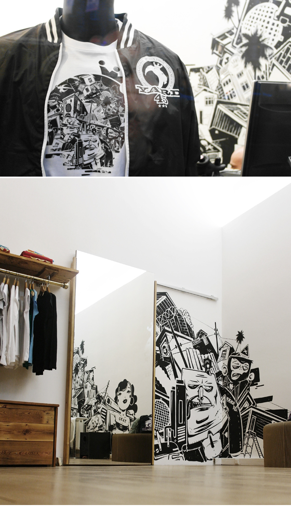 What kind of music do you listen when you are working? When working in the office, I generally listen to electronic music. But, its characteristic depends on what kind of illustration I’m specifically working on – if it’s going to be a positive one the music is straight-line, and with more weird or gloomy illustrations I prefer Breakbeat and Industrial Techno. When painting a wall, I generally do not listen to music – there I listen to the sounds of the street and to passing people.