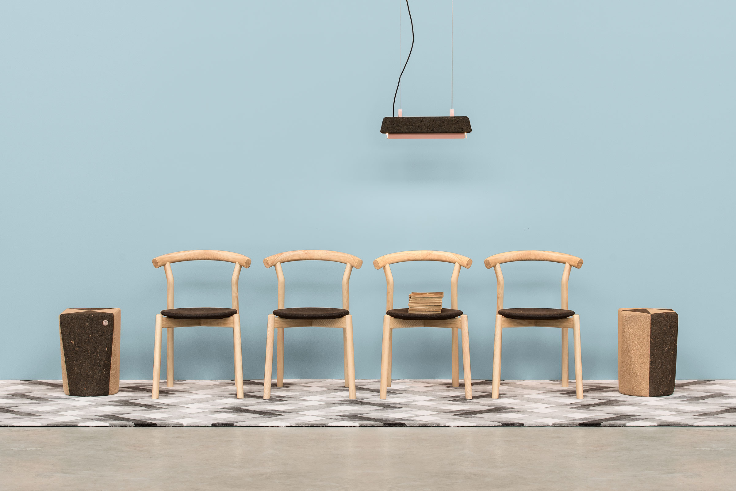 With a strong geometric character, DUO is a fantastic dialogue between two different types of a natural material – light and dark cork. Its main characteristics are the visual and tactile qualities of the surfaces which makes the seat warm and pleasant. It also helps reduce environmental noise, given the material’s sound absorbing properties, making it perfect for lounges, bars or restaurants.