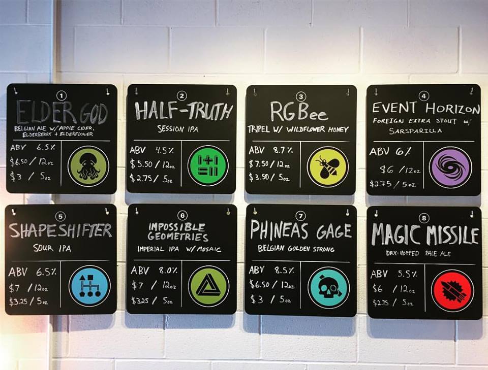 On the beer side, we’re primarily brewing modern American-inspired hoppy beers and a variety of sours. There are a few culinary-type beers thrown in which have various fruit or spice additions. Our concept has had to continue to evolve in response to market feedback based on what works and what doesn’t work. Ultimately we brew what we like to drink, though. As for the overall concept, it is rooted a bit in geek culture but there is no profound meaning other than our desire for continuous improvement and approaching beer without too many pre-conceived notions of what it should be like.