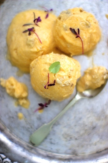 via twopeasandtheirpod. comCaramel Cinnamon Ice Cream with Black Gingerbread Chunk