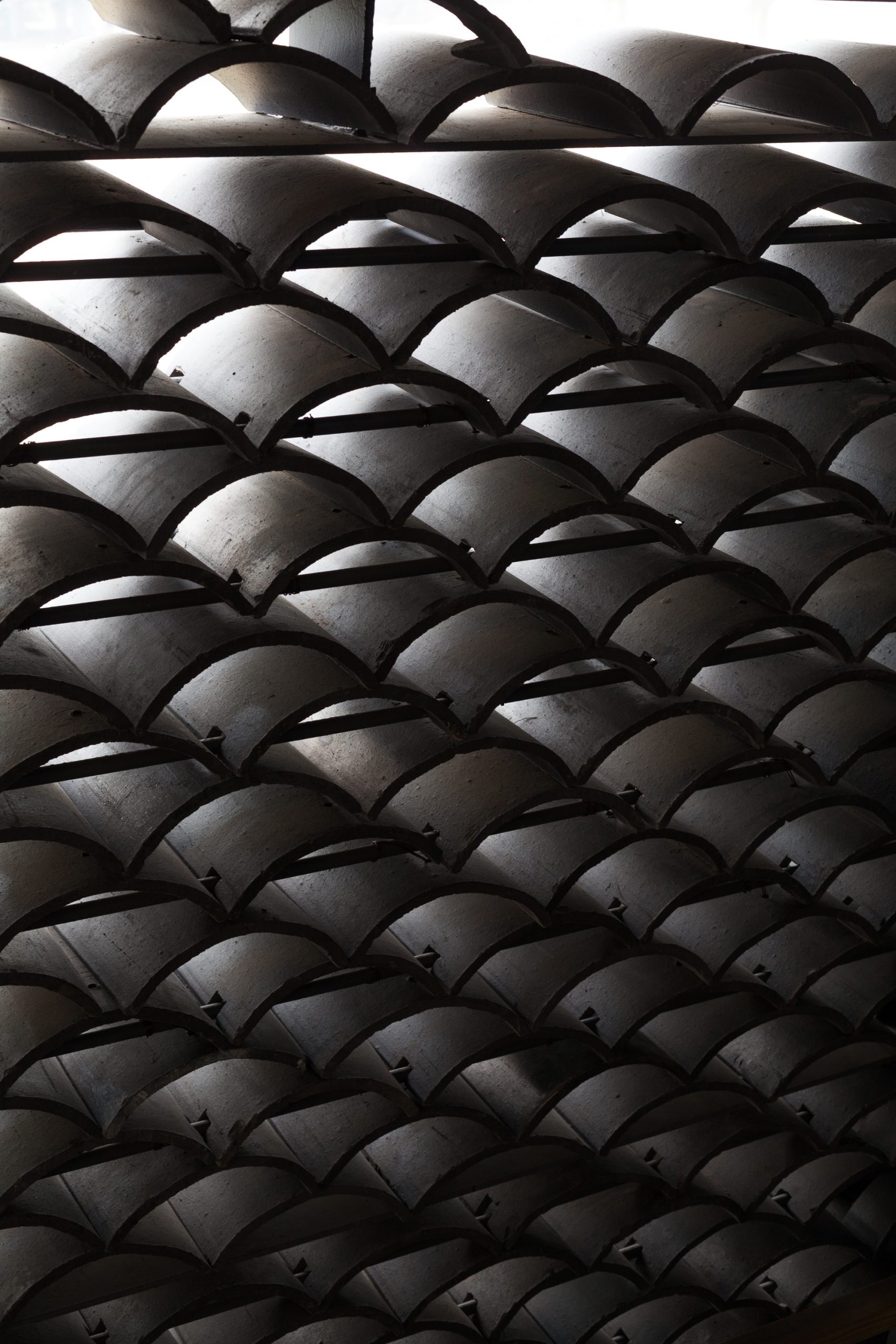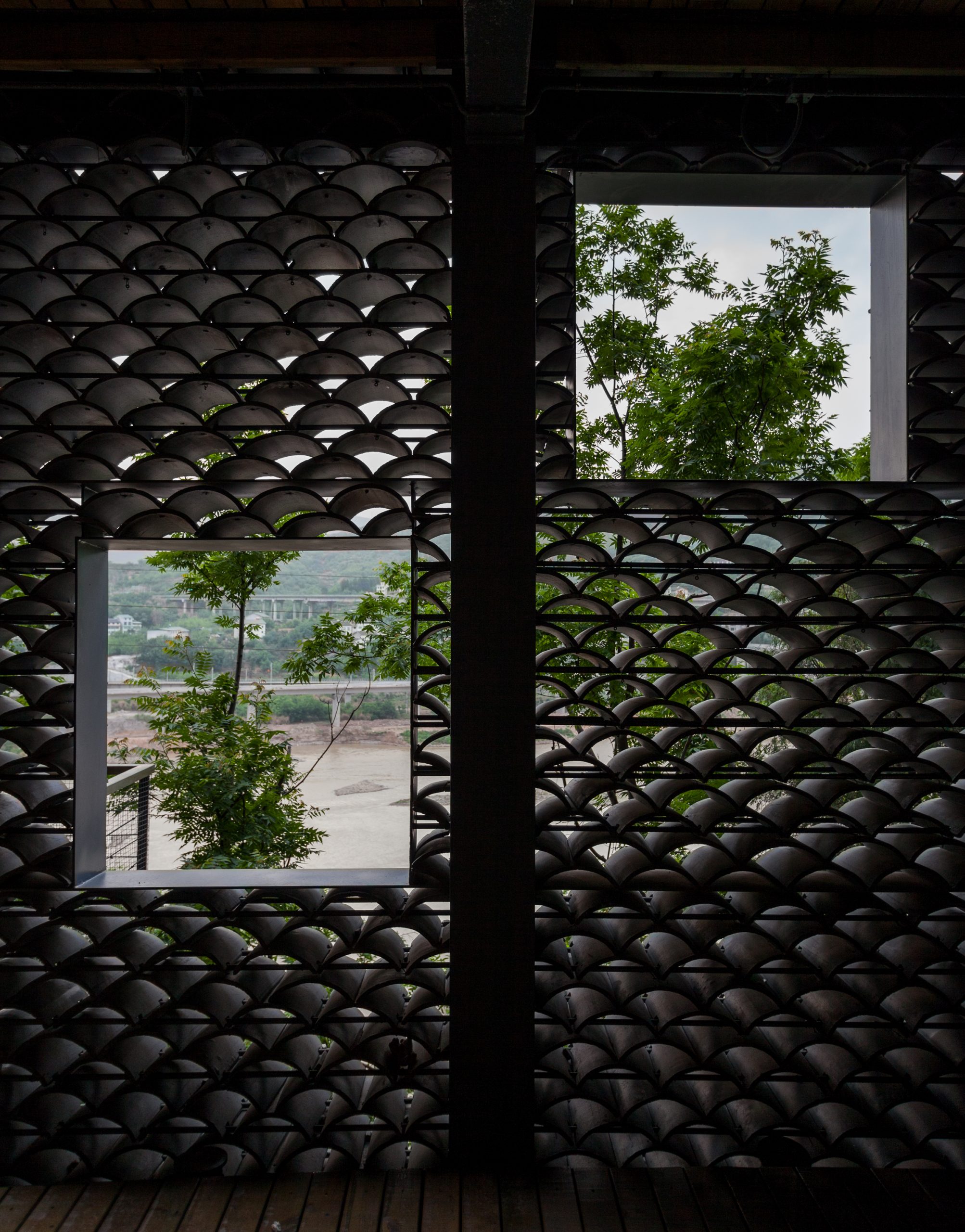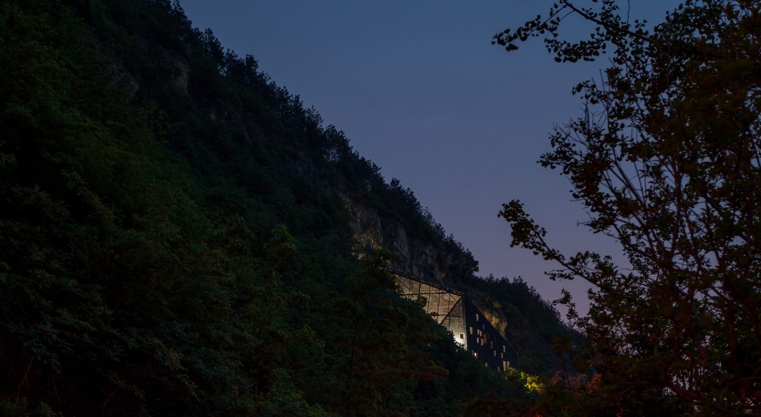 The gray tiles as common local materials are widely used in the project as one of the major materials both on the walls and the roof. Its color is similar to that of the cliff and easy to blend into the immediate environment. Besides, with the time flies and under the local climatic conditions, moss would appear on those tiles, which would further integrate the building into its context and would bring a sense of organic growth to it.