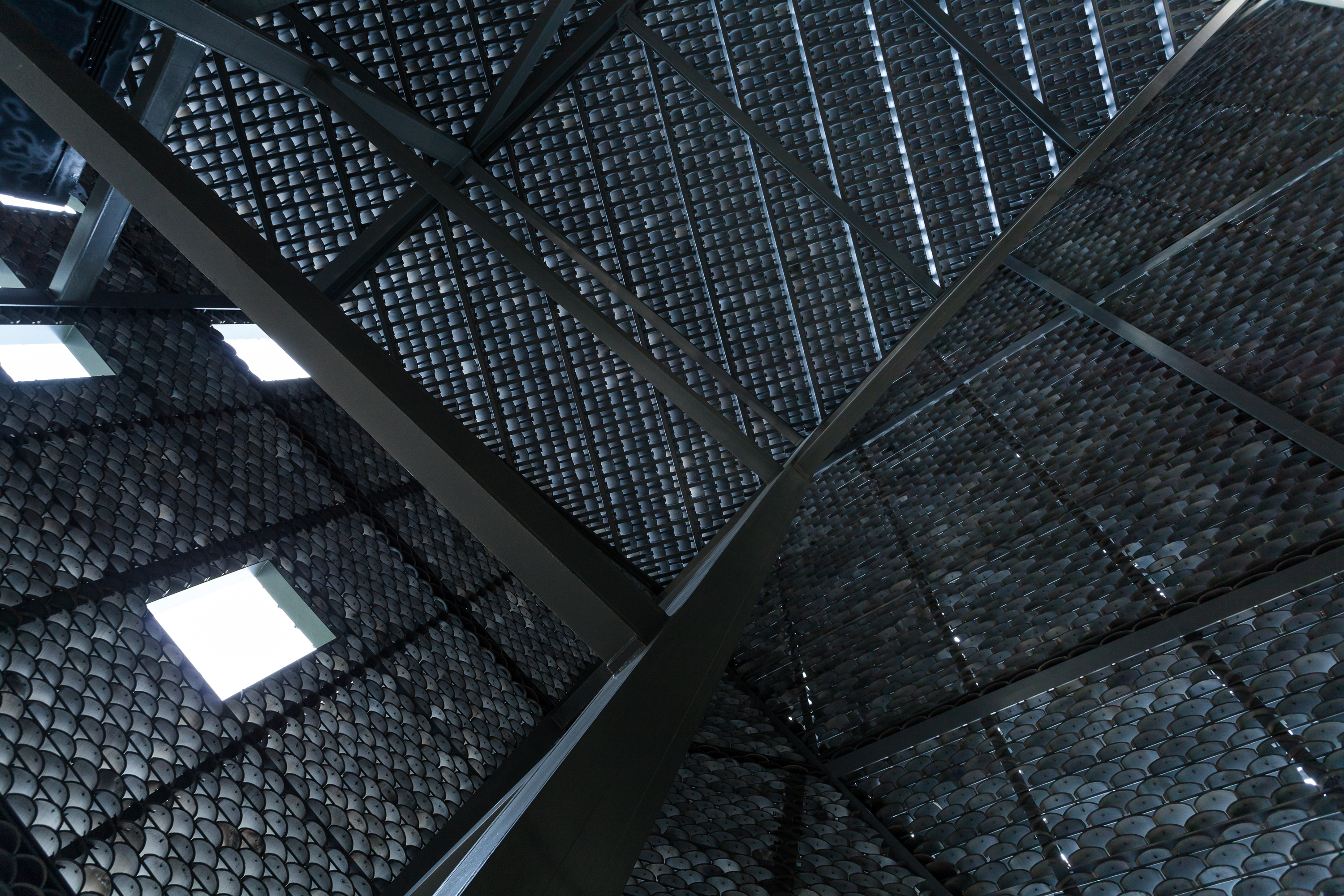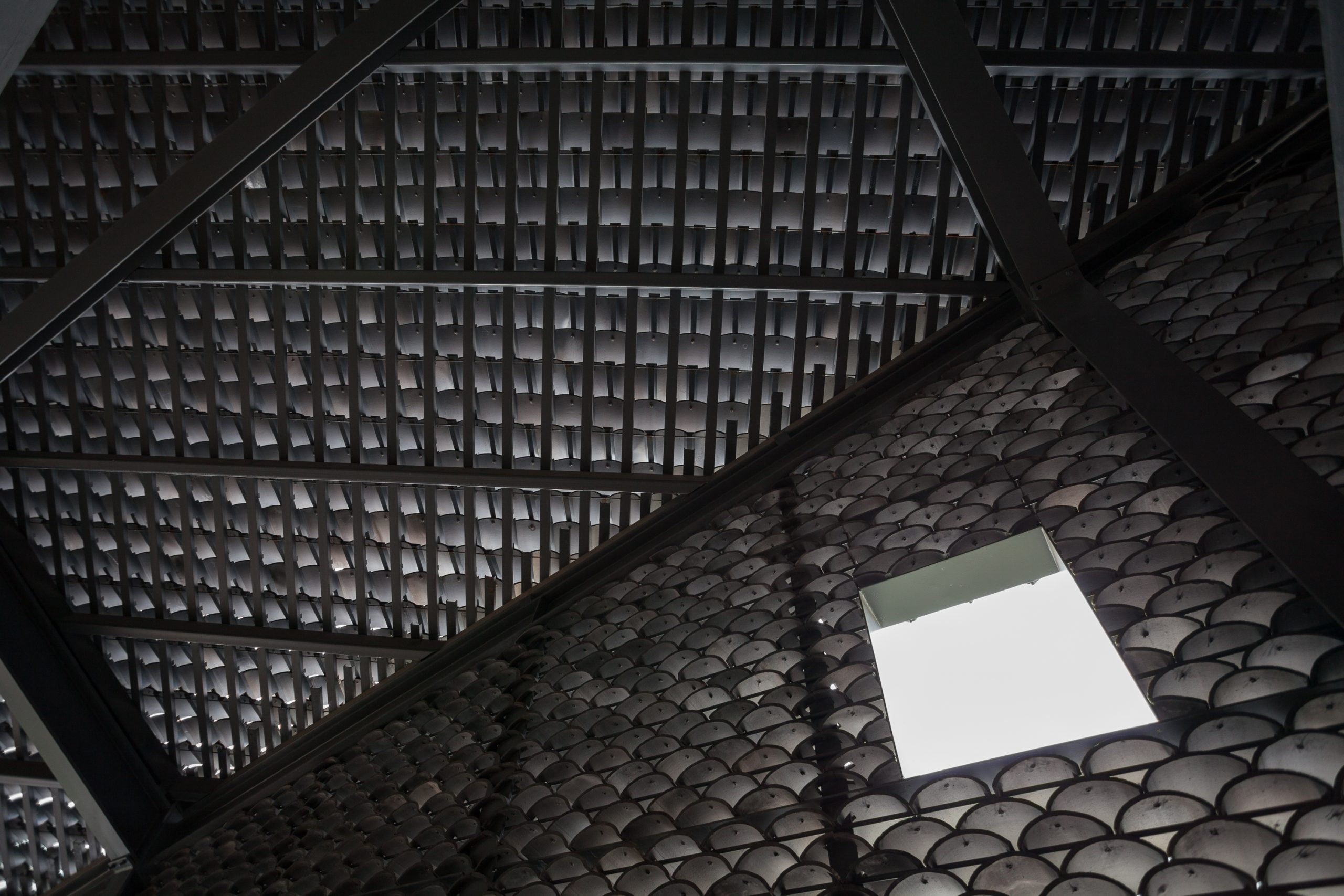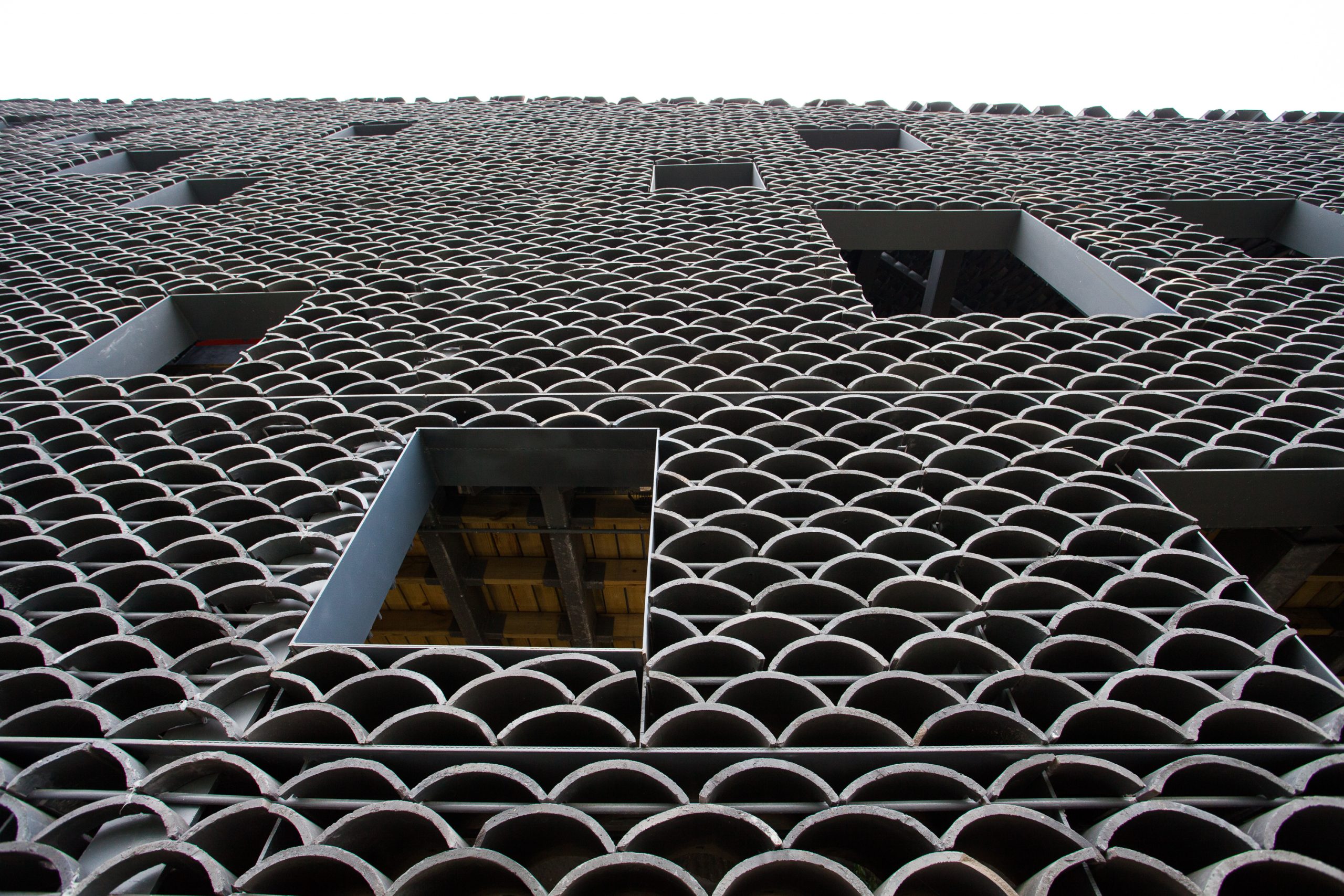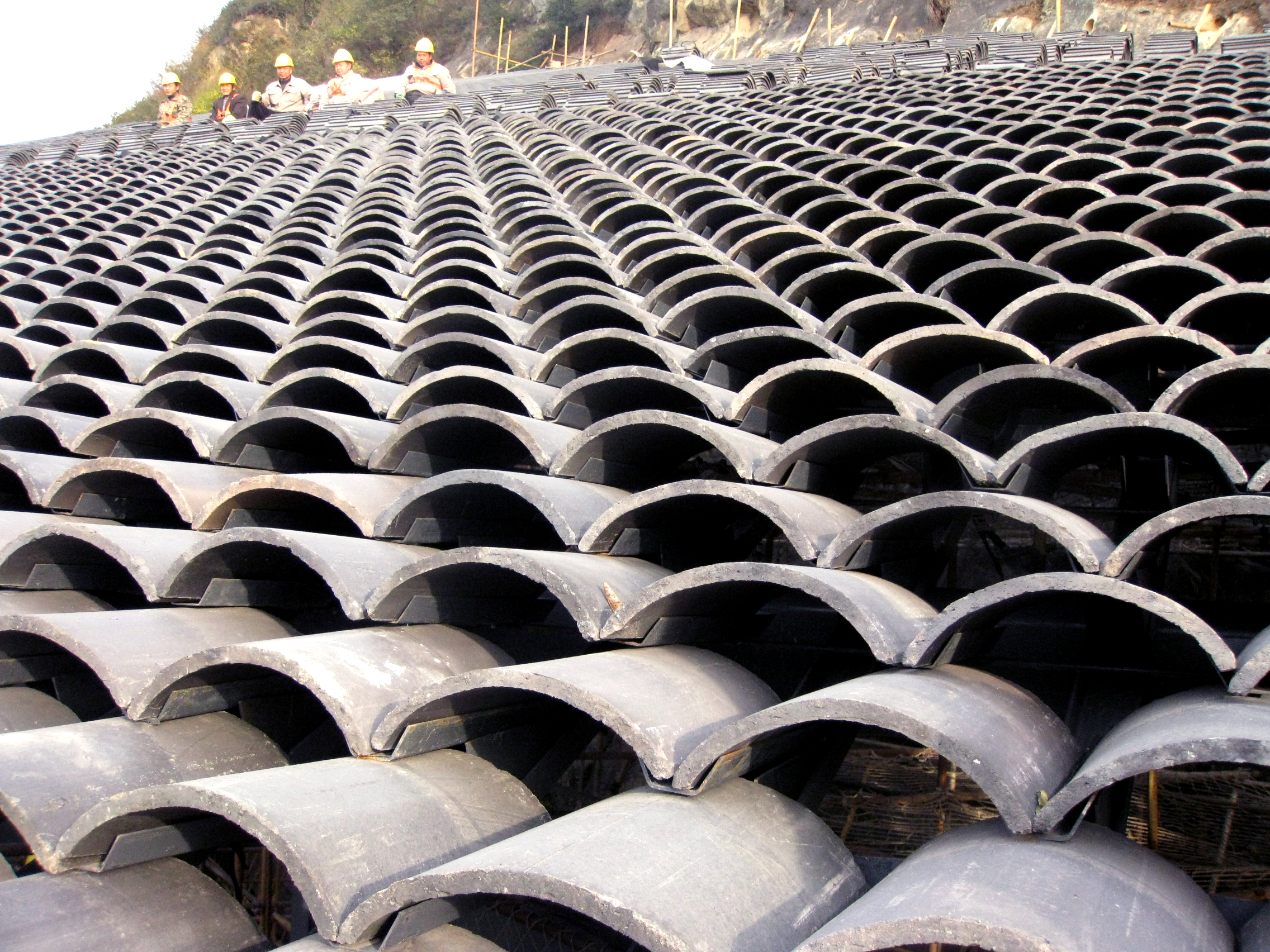 The gray tiles as common local materials are widely used in the project as one of the major materials both on the walls and the roof. Its color is similar to that of the cliff and easy to blend into the immediate environment. Besides, with the time flies and under the local climatic conditions, moss would appear on those tiles, which would further integrate the building into its context and would bring a sense of organic growth to it.