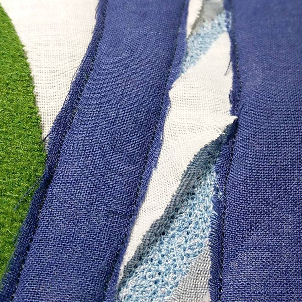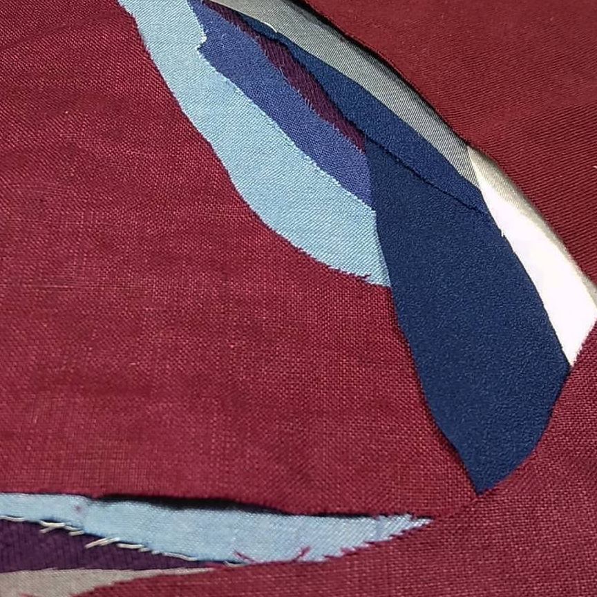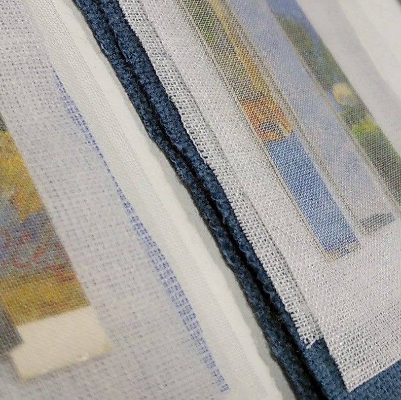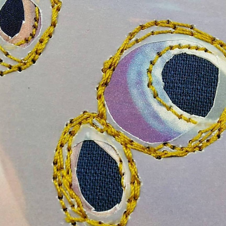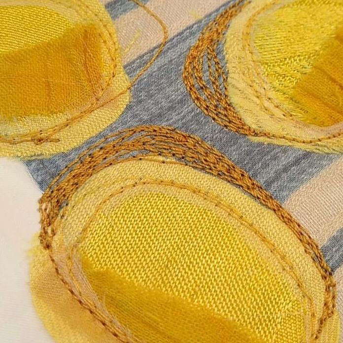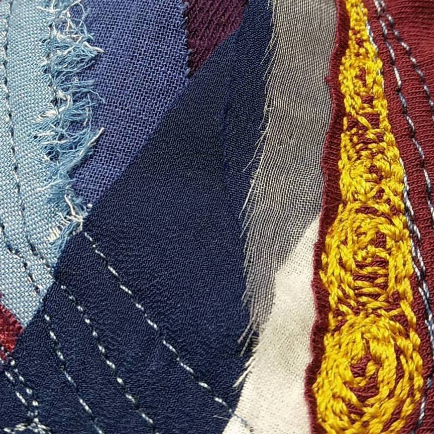 I’m a mixed media and fiber artist. I work with paper and fabric at my home studio.