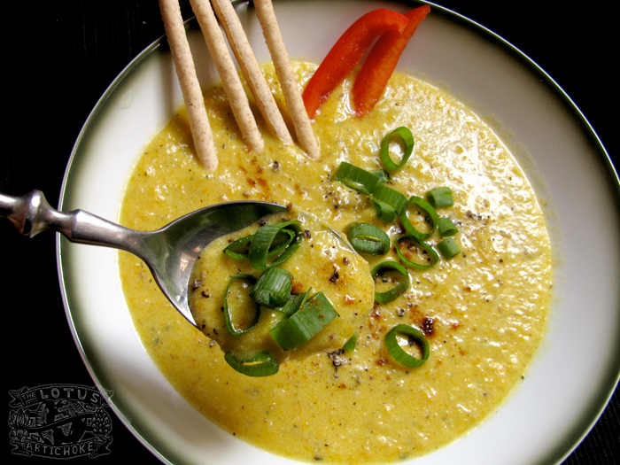 Carrot Ginger Zucchini Soup via lotusartichoke.com