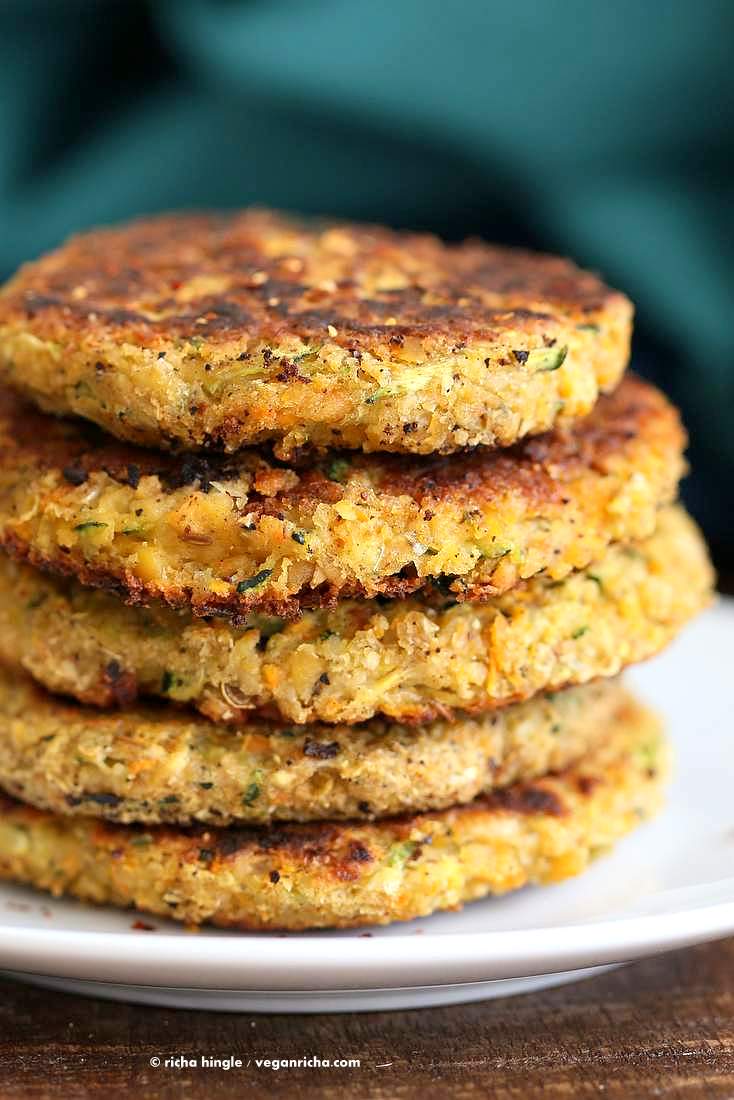 CARROT ZUCCHINI CHICKPEA FRITTERS via veganricha.com
