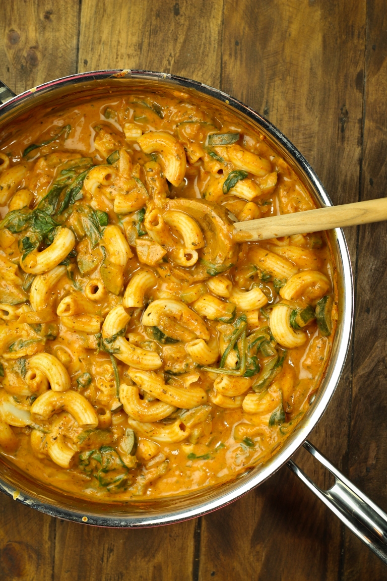Chili Sauce with Zucchini, Spinach and Pasta via thevegan8.com