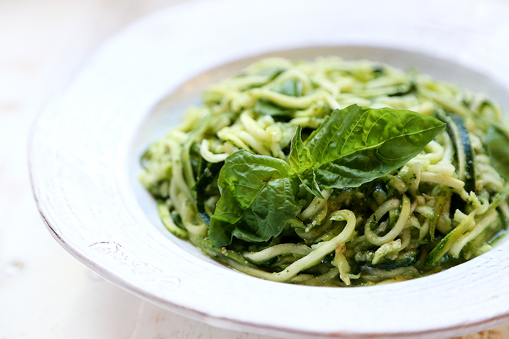 Raw Vegan Zucchini Pasta with Pesto via divinehealthyfood.com