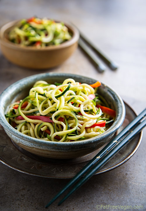 Zucchini Noodles with Sesame-Peanut Sauce via blog.fatfreevegan.com