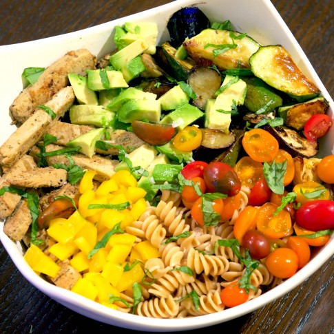 CALIFORNIA VEGGIE PASTA BOWL WITH BEYOND CHICKEN via beyondmeat.com
