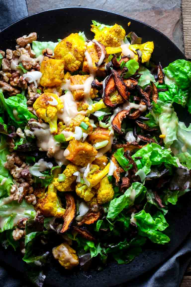 turmeric roasted cauliflower and tempeh power salad vegan via healthyseasonalrecipes.com
