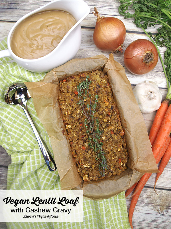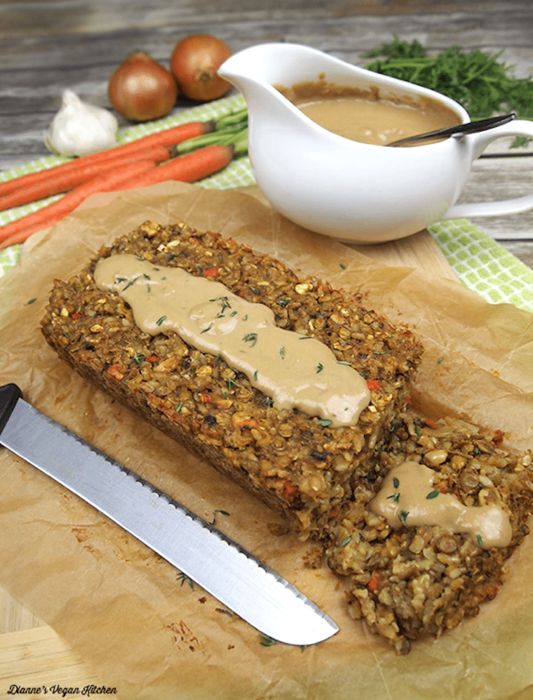 Lentil Loaf with Cashew Gravy via diannesvegankitchen.com/